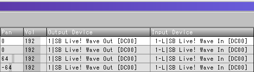 Panは、バス、マスターへオーディオの出力する定位で、513段階で指定できます。-256で左、0で中央、256で右から出力されます。
